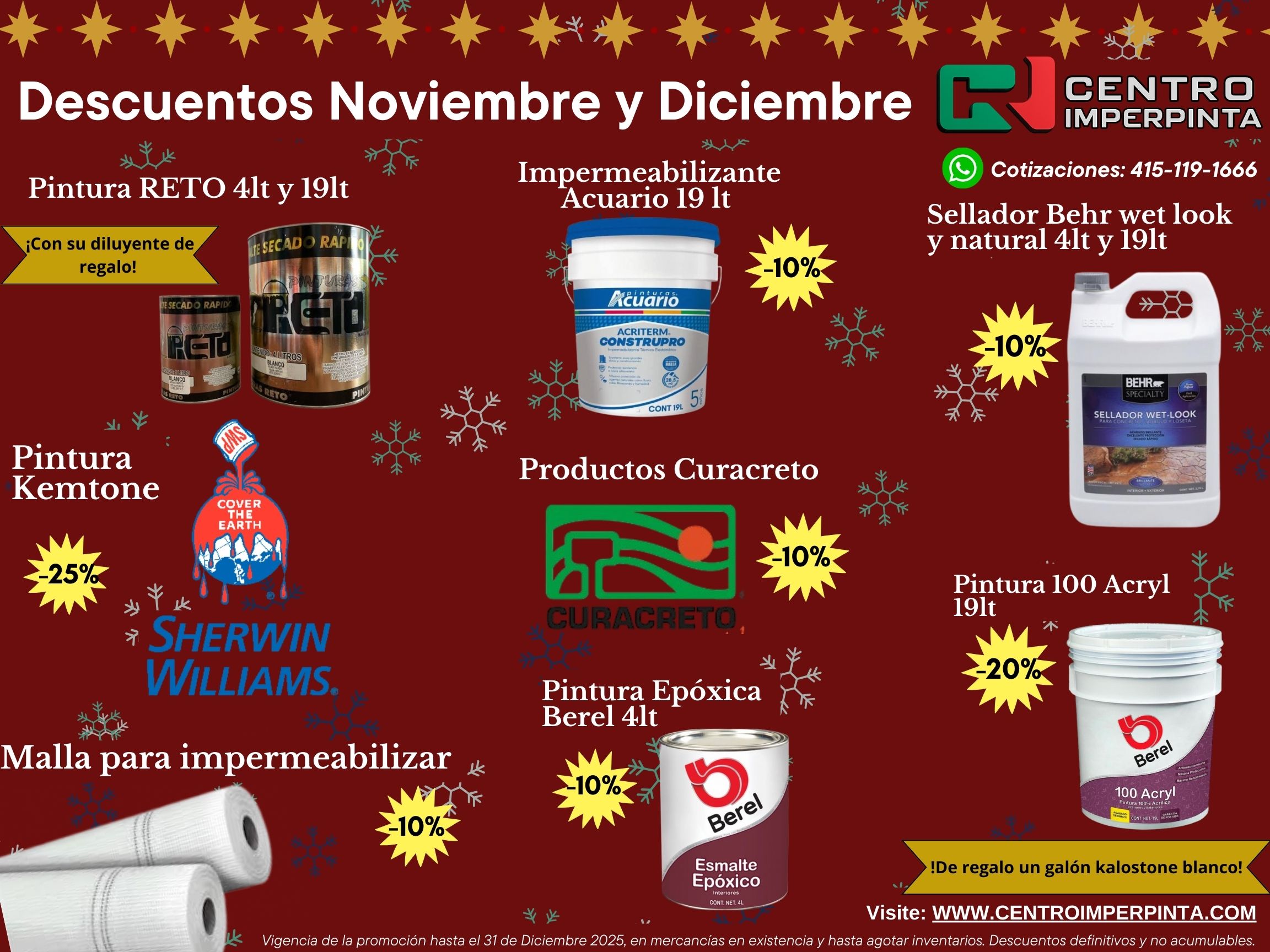 Ven a #CentroImperpinta y conoce las increíbles #promociones en pintura que tenemos para ti este mes de Diciembre: