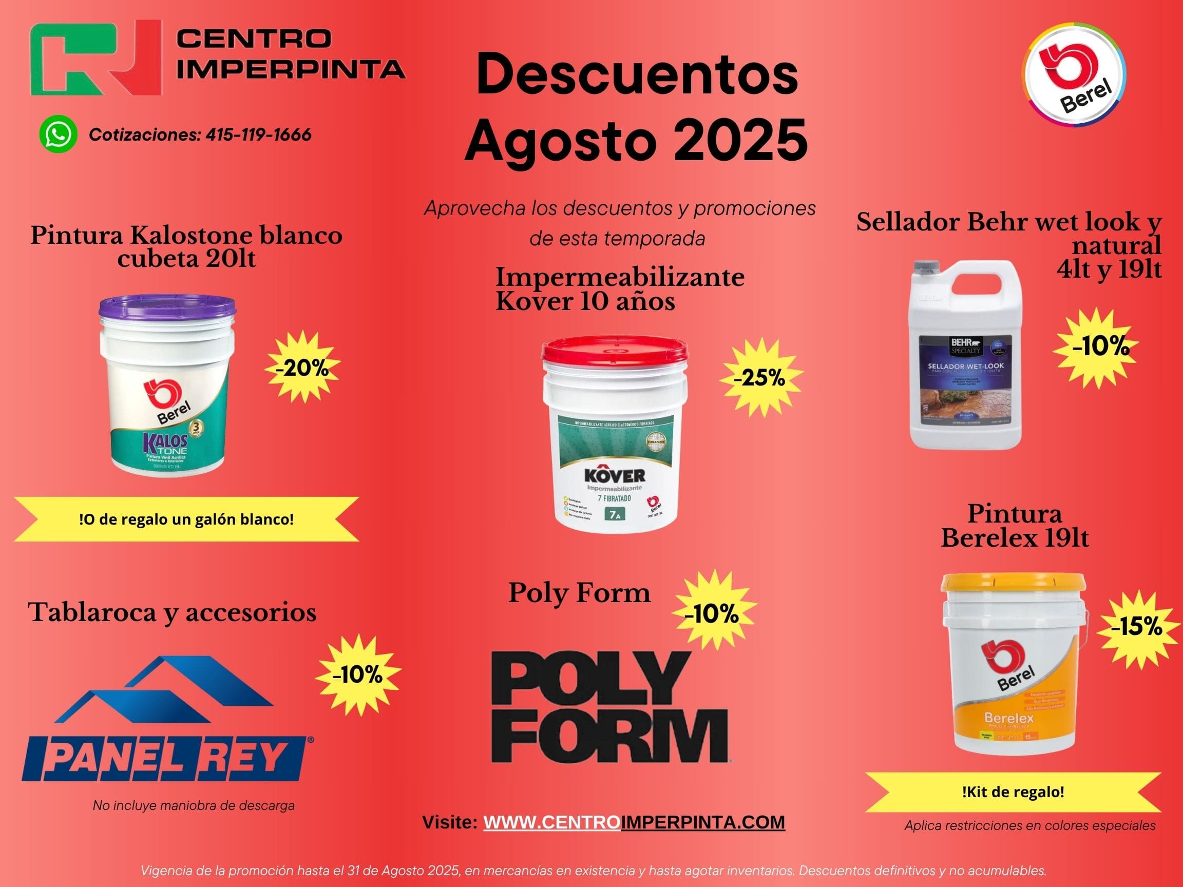 Ven a #CentroImperpinta y conoce las increíbles #promociones en pintura que tenemos para ti este mes de Agosto: