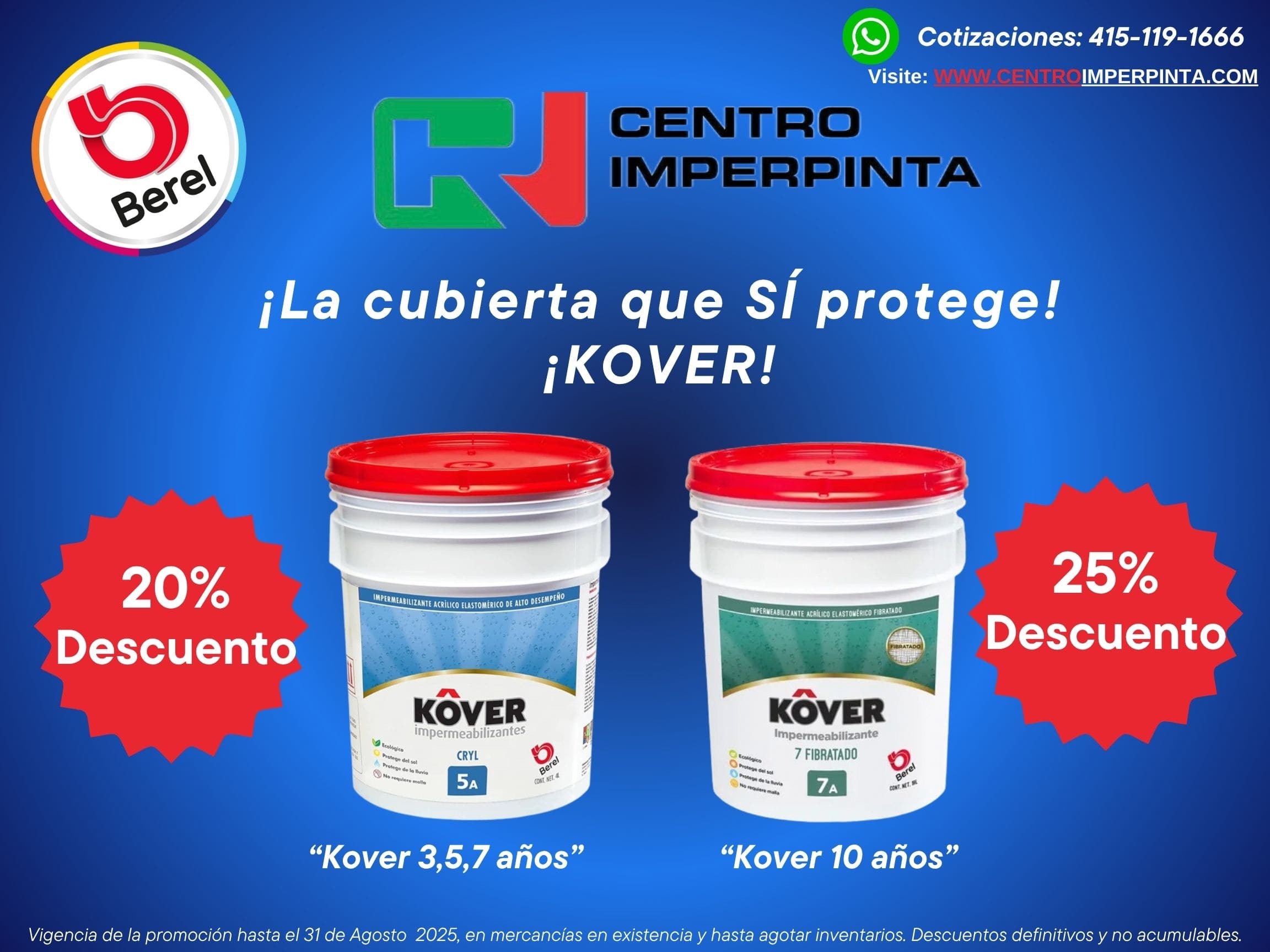- 25% de descuento en Impermeabilizante Kover 10 años, APROVECHA!!