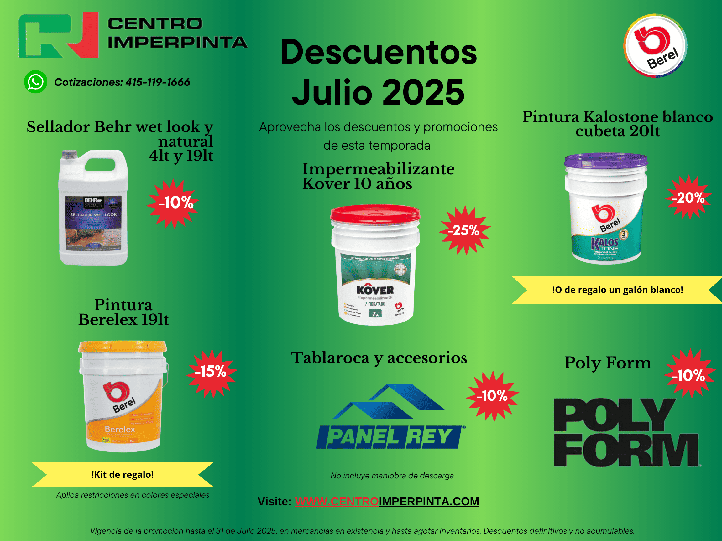 Ven a #CentroImperpinta y conoce las increíbles #promociones en pintura que tenemos para ti este mes de Julio: